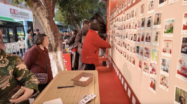 活动中,不少居民翻出手机里珍藏的旧照:孩子童年的笑脸、家人团聚的瞬间、姐妹出游的合照,也有不少居民现场拍摄照片。照片在打印后附上手写祝愿,层层叠叠贴满整面墙,组成一道暖心的时光走廊。