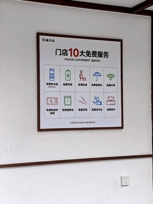 更值得注意的是,在麻爪爪陈家桥店后门,可以看见门店长期提供“免费饮水、充电、休息”等十项便民服务,并且所有麻爪爪均张贴提供。这些举措都能感受到,麻爪爪不仅仅是售卖卤味的“门店”,更是能位社区居民提供支持与便利的“暖心驿站”。这份担当,让商业行为浸染了人情味的底色。