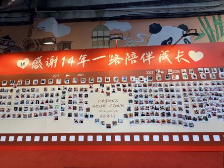 现场也不乏年轻面孔,有人为孩子写下“健康成长”,有学生许愿“考公上岸”,还有一位男士特意带来11年前在麻爪爪陈家桥店对面拍下的街景,并留言:“祝陈家桥和麻爪爪越来越好!”
