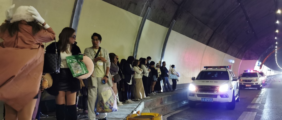 时间在紧张的救援中流逝。14时35分,随着新轮胎更换完毕且经安全检查确认合格,车辆故障成功排除。执法人员随即组织外籍游客有序登车,并指挥救援保障人员及设备安全撤离。短短95分钟,一场隧道内的突发险情得到妥善处置,隧道交通秩序迅速恢复正常。